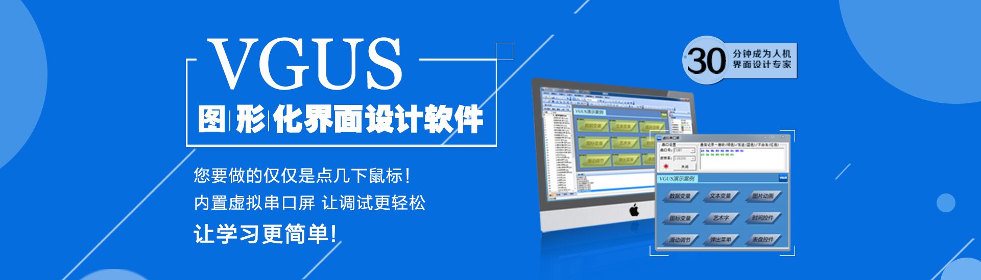秉持讓人機交互設(shè)計更簡單的理念,成功研發(fā)了工業(yè)組態(tài)軟件VGUS(Viewtech Graphical User Software)。該軟件提供了一種圖形化的人機交互功能設(shè)計方法,打破了傳統(tǒng)的描點、畫線的界面設(shè)計模式,降低了儀器設(shè)備的人機交互系統(tǒng)設(shè)計難度,解決了人機交互相關(guān)工作的重復(fù)性設(shè)計問題,能夠讓設(shè)計人員把更多的精力集中于產(chǎn)品關(guān)鍵技術(shù)研發(fā)上,專心于專業(yè)產(chǎn)品的開發(fā),提高了儀器設(shè)備的開發(fā)效率。